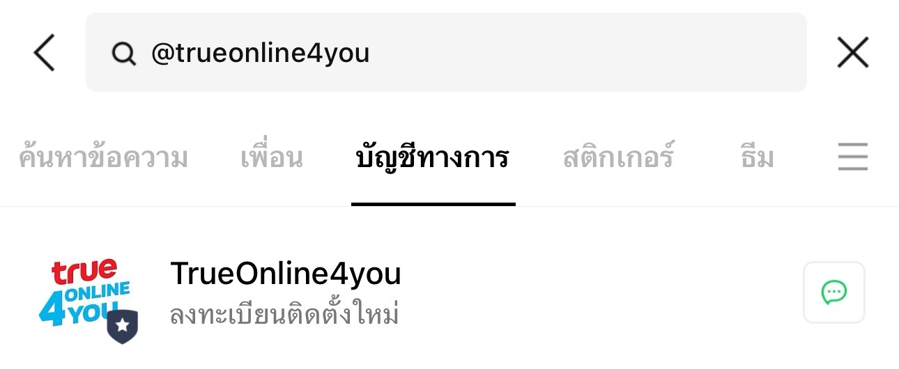 1. เพิ่มเพื่อน @trueonline4you เพื่อตรวจสอบพื้นที่ให้บริการ
