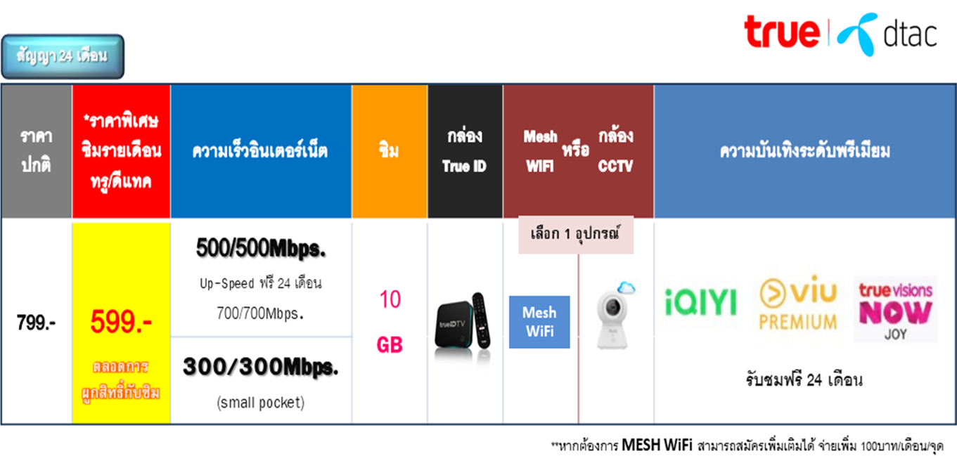 - แพ็คเกจ 599-699 บาท